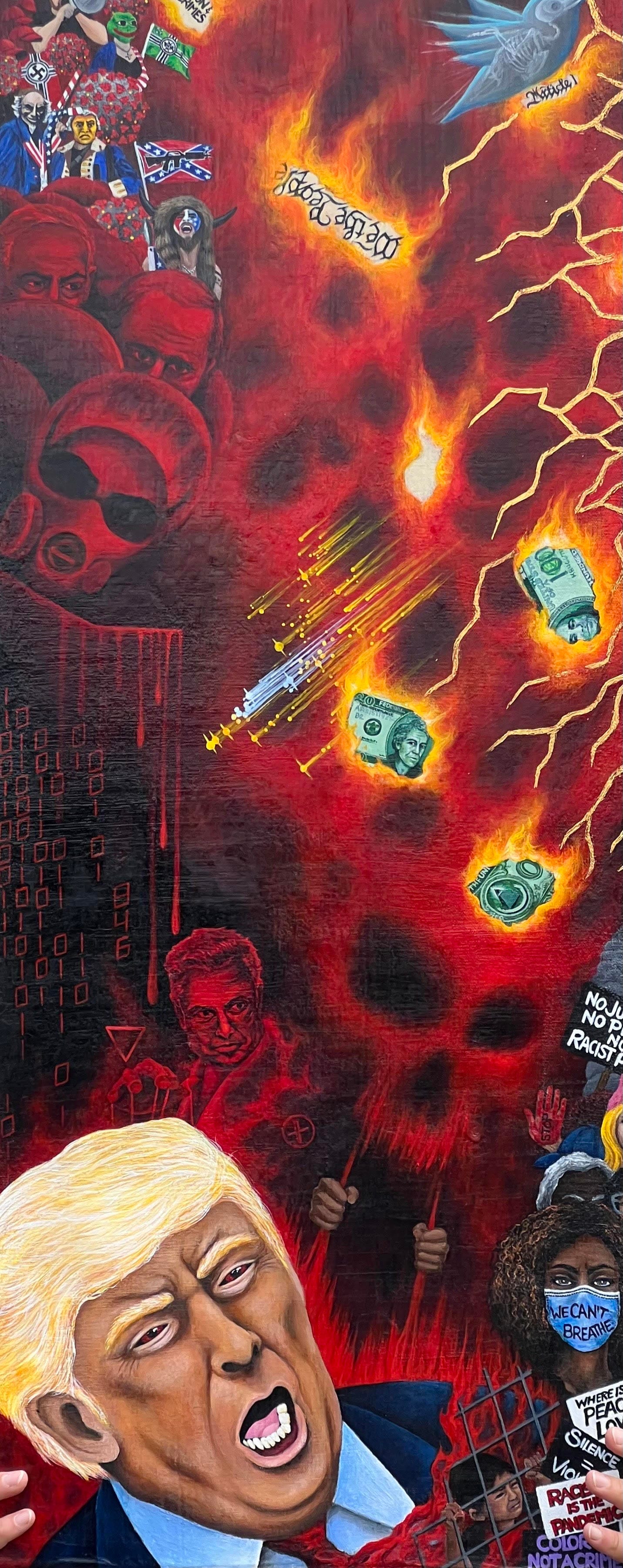 I assume it was the artist standing on the sidewalk outside the courthouse, waving this sign at traffic. Highway 101 north has three lanes of traffic rumbling by on that side of the building. RV’s and logging trucks, many SUVs, contractors, and tourists stream past during these events. A few hundred people were out with signs and dogs and friends. Most reactions were honks and waves of support. The usuals in rumbly pickup trucks grumbled by, a couple waving jaunty fingers. Many drivers just kept on going. But if they looked - this.